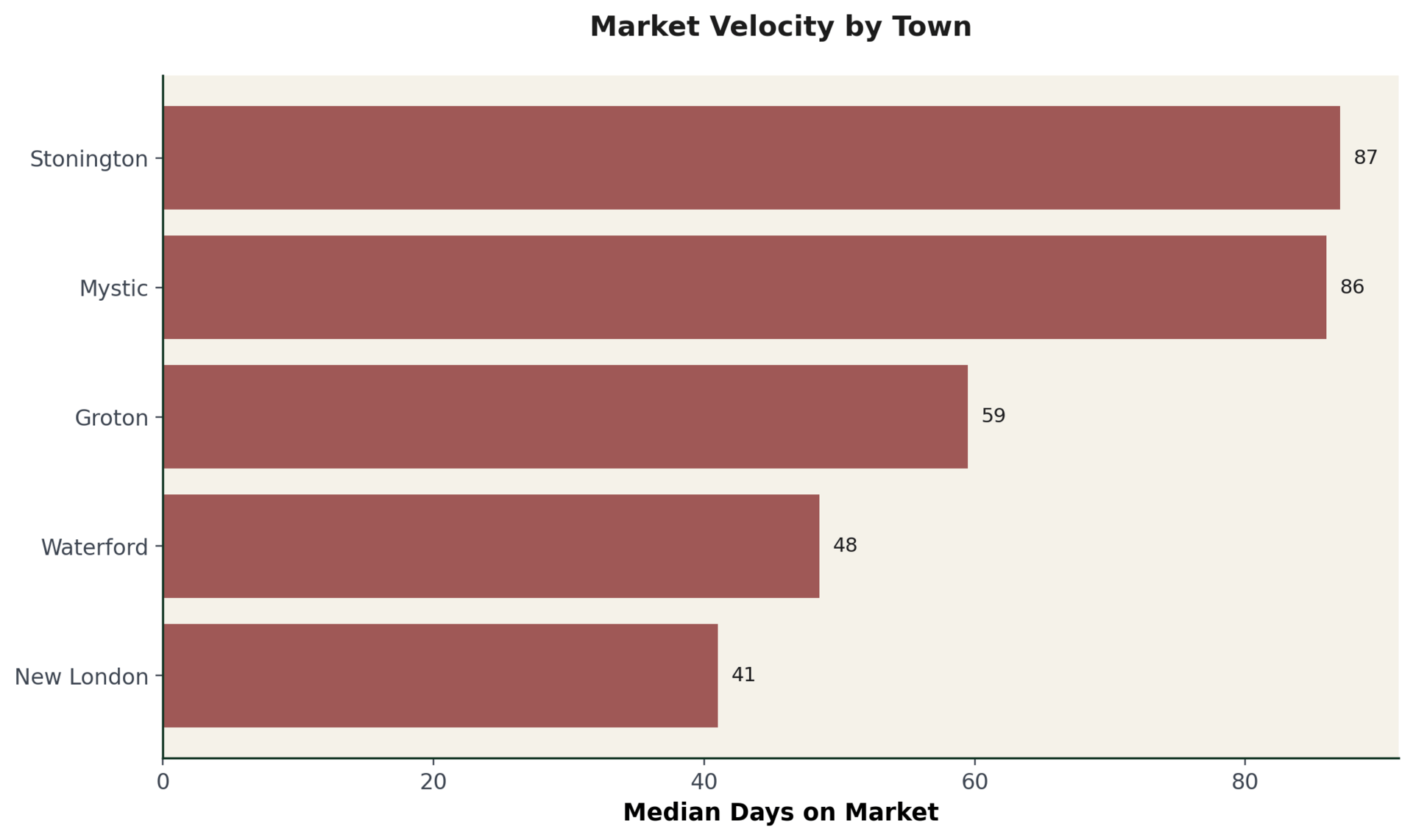 Takeaway: Homes in Groton and New London continue to move faster than the county average, showing steady demand even as listings increase.