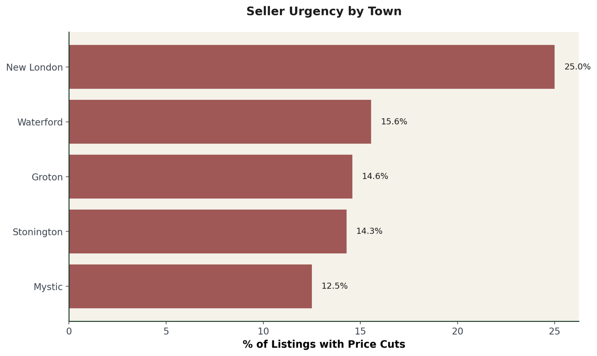 Takeaway: Sellers in New London are adjusting prices more than other towns as buyers grow selective.