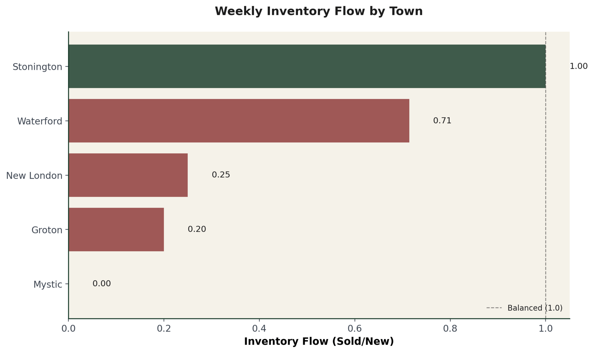 After a burst of activity in early October, the market is shifting back toward balance. Groton’s brief surge cooled this week as new listings outpaced sales across nearly every town. It’s a reminder that even strong local demand eventually meets seasonal gravity.
